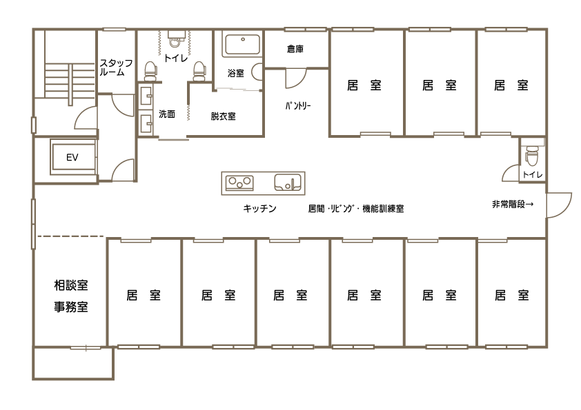 認知症高齢者が共同で暮らす「住居」として、家庭的な雰囲気と地域住民との交流のもとで専門的な認知症ケアを提供しています。